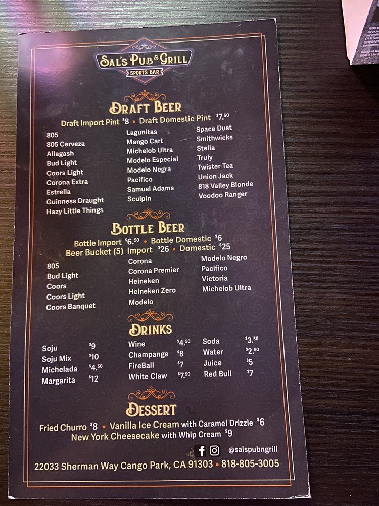Welcome to Sal's Pub & Grill, the ultimate dive bar experience located in Canoga Park, CA. Known for its relaxed atmosphere and strong community vibe, Sal's is the perfect spot for sports enthusiasts and food lovers alike. The menu boasts an enticing array of comfort food, making it a go-to destination.
